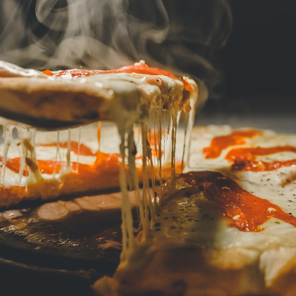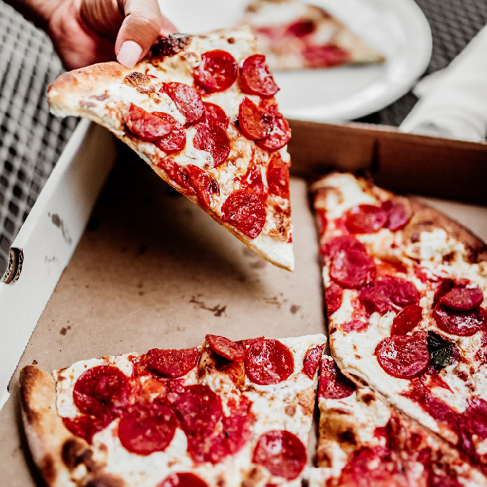 خمیر پیتزا ایتالیایی، ژامبون پپرونی، فلفل دلمه ای، قارچ، سس مخصوص، پنیر پیتزا، به همراه سس تک نفره