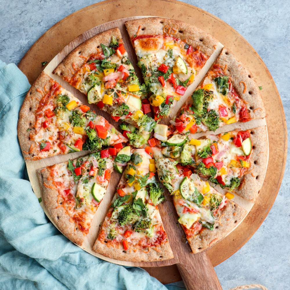 خمیر پیتزا ایتالیایی، قارچ، سس مخصوص، فلفل دلمه ای، ذرت، زیتون سیاه اسلایسی، پنیر پیتزا، به همراه سس تک نفره