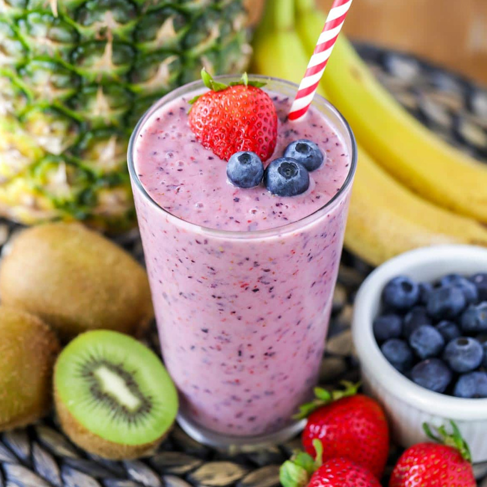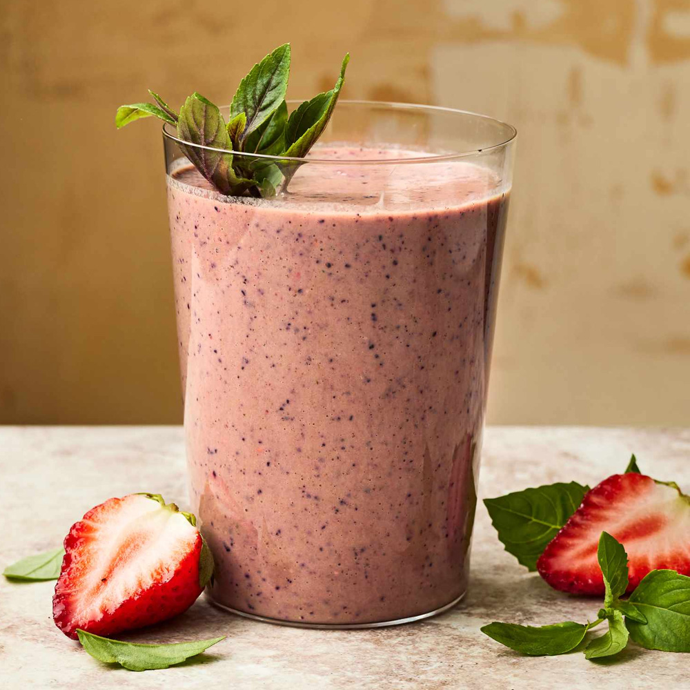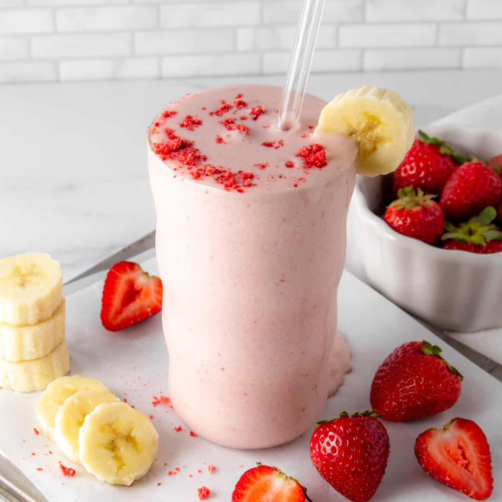 توت فرنگی، موز، ماست یونانی، عسل، یخ